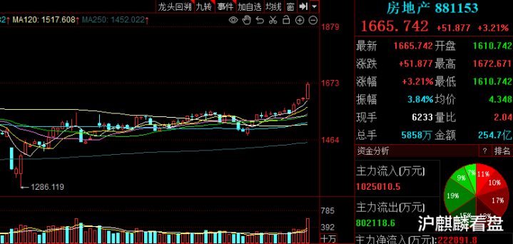 房地产板块今天也表现不错,相关的如房屋检测、水泥、物业管理、装配式建筑、新型城镇化、特色小镇、地下管网、建筑节能等相关上下游产业链今天都带动起来了,房地产是牵一发动全身,目前也是刚底部起来,在政策扶持下,或许有看点。今天房地产板块大涨3.21%,板块内多股涨停,龙头是渝开发和四方新材不知不觉已经走出了4个板了,一个换手一个一字。2连板的有美丽生态,还有1个20cm连板的新城市。首板的有重庆建工、四川双马、深深房A、光大嘉宝等等。